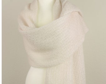 This handknit wrap will keep you warm and cozy all night long. It is made with lightweight yarn for super comfort. Hochwertiger Kaschmir Schal in Ivory zum Brautkleid im Herbst oder Winter.