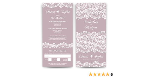 Hochzeitseinladungen Mit Antwortkarte 30 Stuck Spitze In Lila Hochzeitskarten Tickets Amazon De Burobedarf Schreibwaren