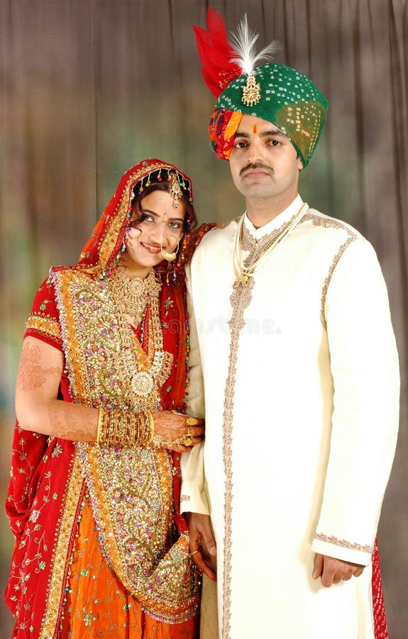 Indische Paare In Der Hochzeitskleidung Stockfoto Bild Von Hochzeitskleidung Indische
