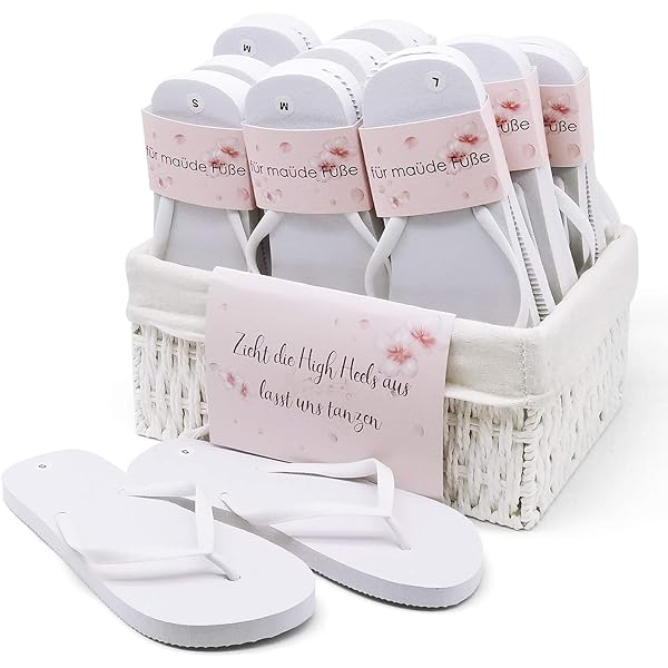 Amazon De Humairc Hochzeit Flip Flops Gaste 10 Paar Vintage Korb Weisse Schuhe Zum Tanzen Gemischte S M L