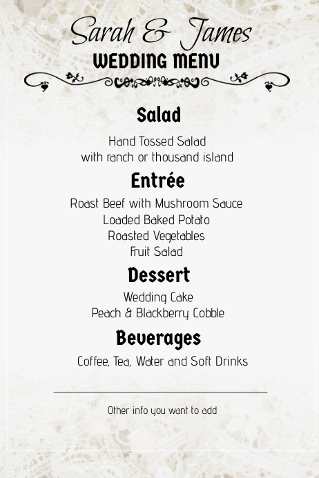 Spitze Hochzeit Menu Portrat Vorlage Postermywall