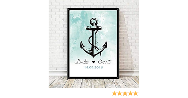 Anker Hochzeitsgeschenk Personalisierter Kunstdruck Anker Geschenk Fur Traumpaare Hochzeit Optional Mit Rahmen Amazon De Handmade