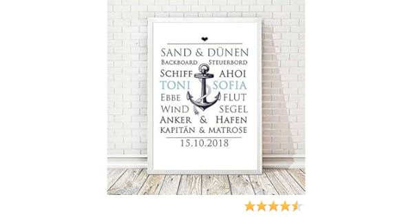 Personalisierter Kunstdruck Mit Namen Anker Personalisierte Geschenke Zur Hochzeit Zur Geburt Zur Taufe Hochzeitsgeschenke Geburtsgeschenke Taufgeschenke Geldgeschenke