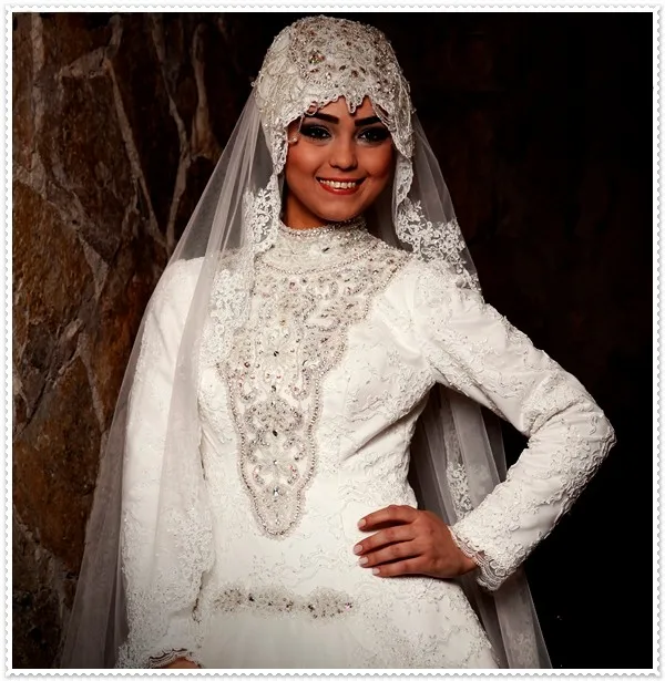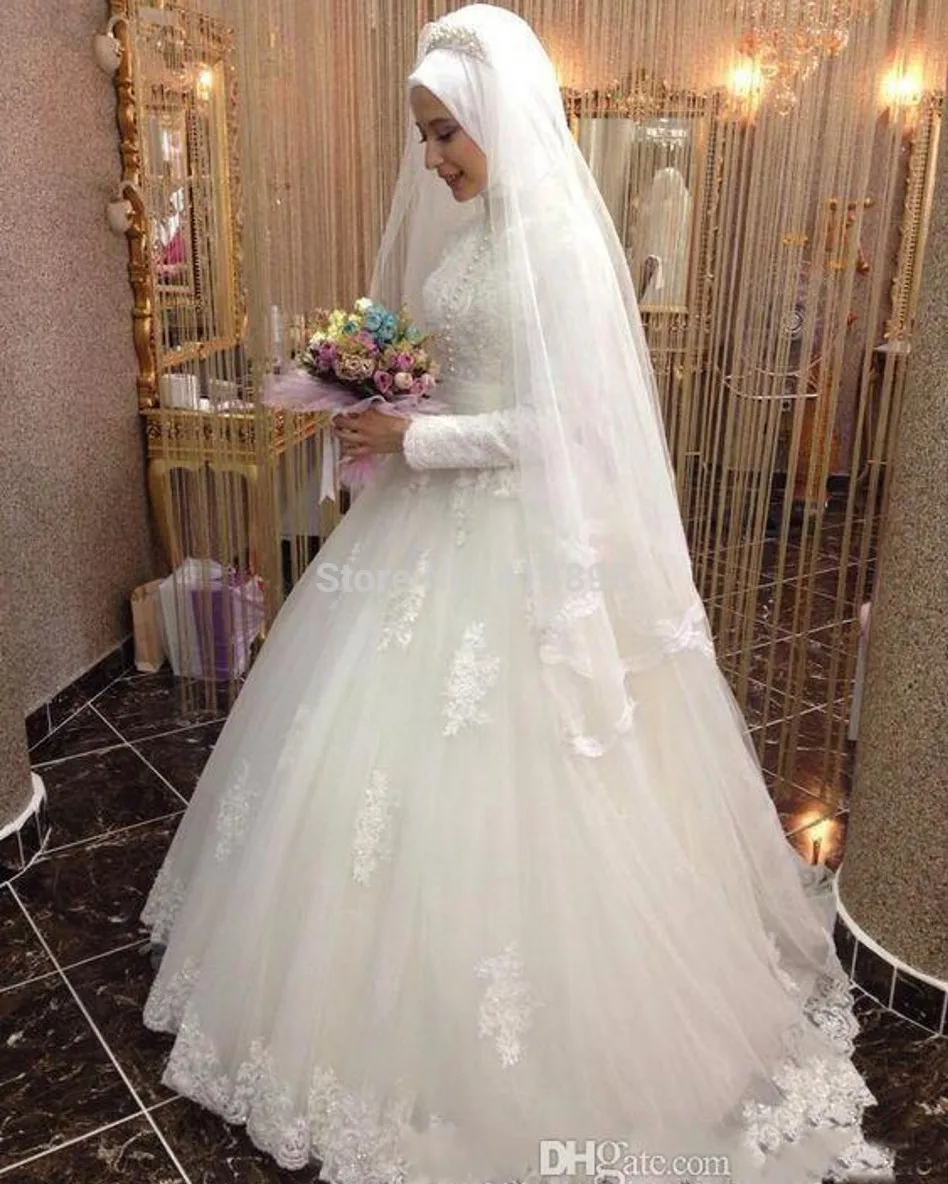 Grosshandel 19 High Neck Arabisch Hijab Muslim Brautkleider Lange Armel Nach Mass Romantische Appliques Spitze Weiss Brautkleider Von Beautydesign 250 47 Auf De Dhgate Com Dhgate