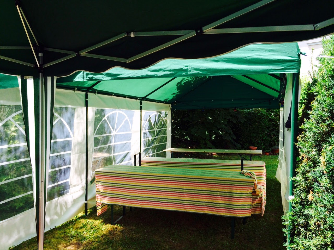 Am vergangenen Wochenende haben wir für eine Gartenparty unser 6×9 Meter Zelt aufgebaut. Mit einem regensicheren Pavillon lässt sich die Gartenparty im Herbst auch nach draußen verlegen. Jetzt sollten Sie Maßnahmen treffen.